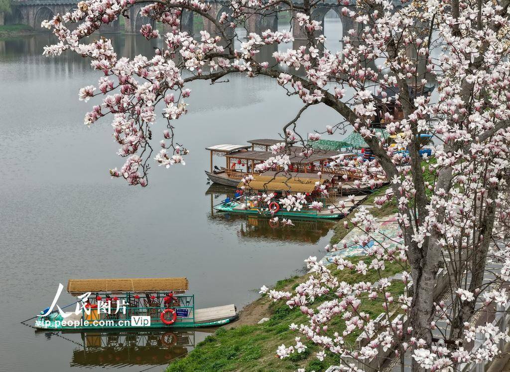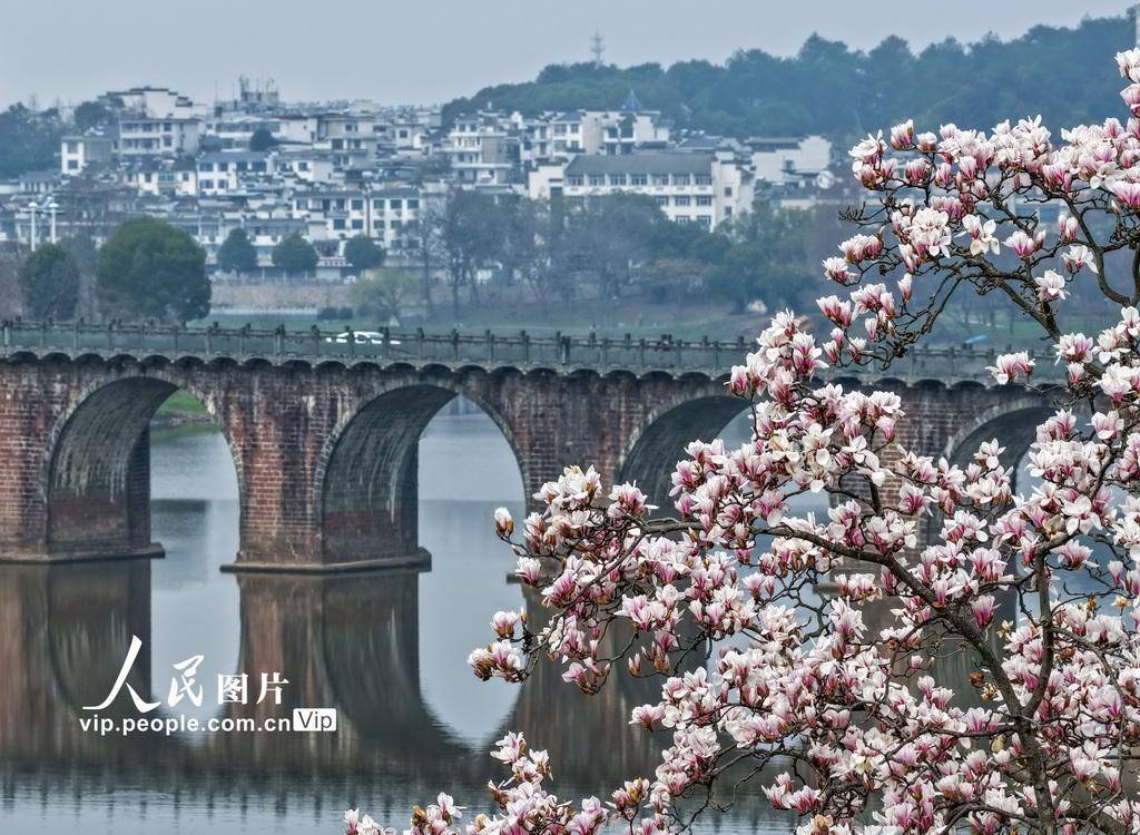 2026年3月4日唐山股票配资,安徽省黄山市歙县新安江畔多景园里的玉兰花渐次绽放,与古桥古塔、江水相互映衬,构成一幅春意盎然的江南画卷。施亚磊摄(人民图片网)