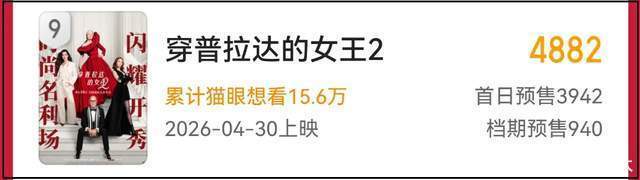 《穿普拉达的女王2》首日预售比《猪猪侠》还低?那是因为还没开启全面预售啦。