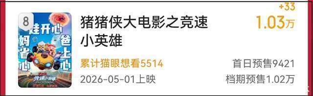 五一档预售最高的动画电影,首日预售9000多块,要不说五一档电影市场惨淡呢。