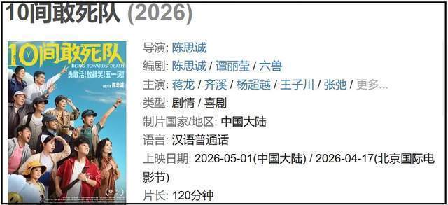 主演有蒋龙、齐溪和杨超越,故事聚焦在一家医院重症病房,10间指的是10号病房,敢死队正是重症病人心理状态的隐喻。