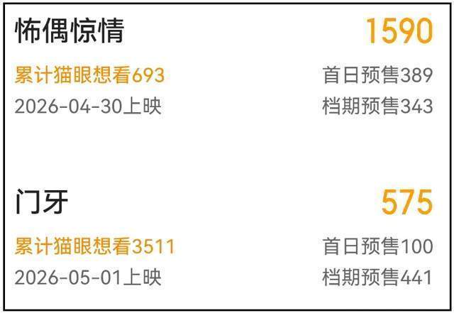 还有两部新片就不详细介绍了,分别是《怖偶惊情》和《门牙》,一个首日预售300多块,一个首日预售100块,就这样吧!