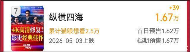 没错,就是周润发、张国荣和钟楚红演的《纵横四海》,4K修复、老片重映,预售已破万。