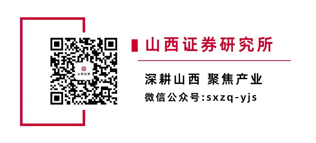 山西证券股份有限公司(以下简称“本公司”)具备证券投资咨询业务资格。本公司不会因为任何机构或个人关注、收到或订阅本订阅号推送内容而视为本公司的当然客户。本公司证券研究报告是基于本公司认为可靠的已公开信息,但本公司不保证该等信息的准确性或完整性。入市有风险,投资需谨慎。在任何情况下,本订阅号中的信息或所表述的意见并不构成对任何人的投资建议。在任何情况下,本公司不对任何人因使用本订阅号中的任何内容所引致的任何损失负任何责任。本订阅号所载的资料、意见及推测仅反映本公司研究所于发布报告当日的判断。在不同时期,本公司可发出与本订阅号所载资料、意见及推测不一致的报告。本公司或其关联机构在法律许可的情况下可能持有或交易本订阅号中提到的上市公司所发行的证券或投资标的,还可能为或争取为这些公司提供投资银行或财务顾问服务。订阅者应当考虑到本公司可能存在可能影响本报告客观性的利益冲突。本公司在知晓范围内履行披露义务。本订阅号的版权归本公司所有。本公司对本订阅号保留一切权利。未经本公司事先书面授权,本订阅号的任何部分均不得以任何方式制作任何形式的拷贝、复印件或复制品,或再次分发给任何其他人,或以任何侵犯本公司版权的其他方式使用。否则,本公司将保留随时追究其法律责任的权利。