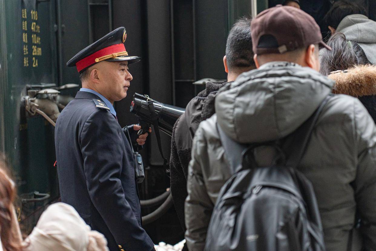 今年56岁的客运值班员刘巍已经在铁路上工作了33年了,这也是他在站台上度过的不知道第几个春运。