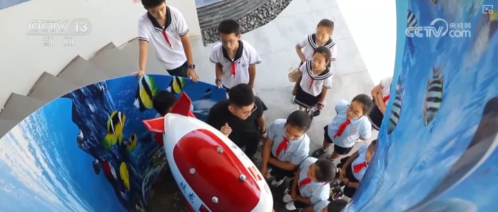 这个暑期,山东青岛新开张的海洋研学主题邮局游客络绎不绝。进入邮局,在螺旋楼梯两侧墙面上,随高度变化展示着不同深度的海底生物,深海区的发光乌贼、中浅海区的贝类。